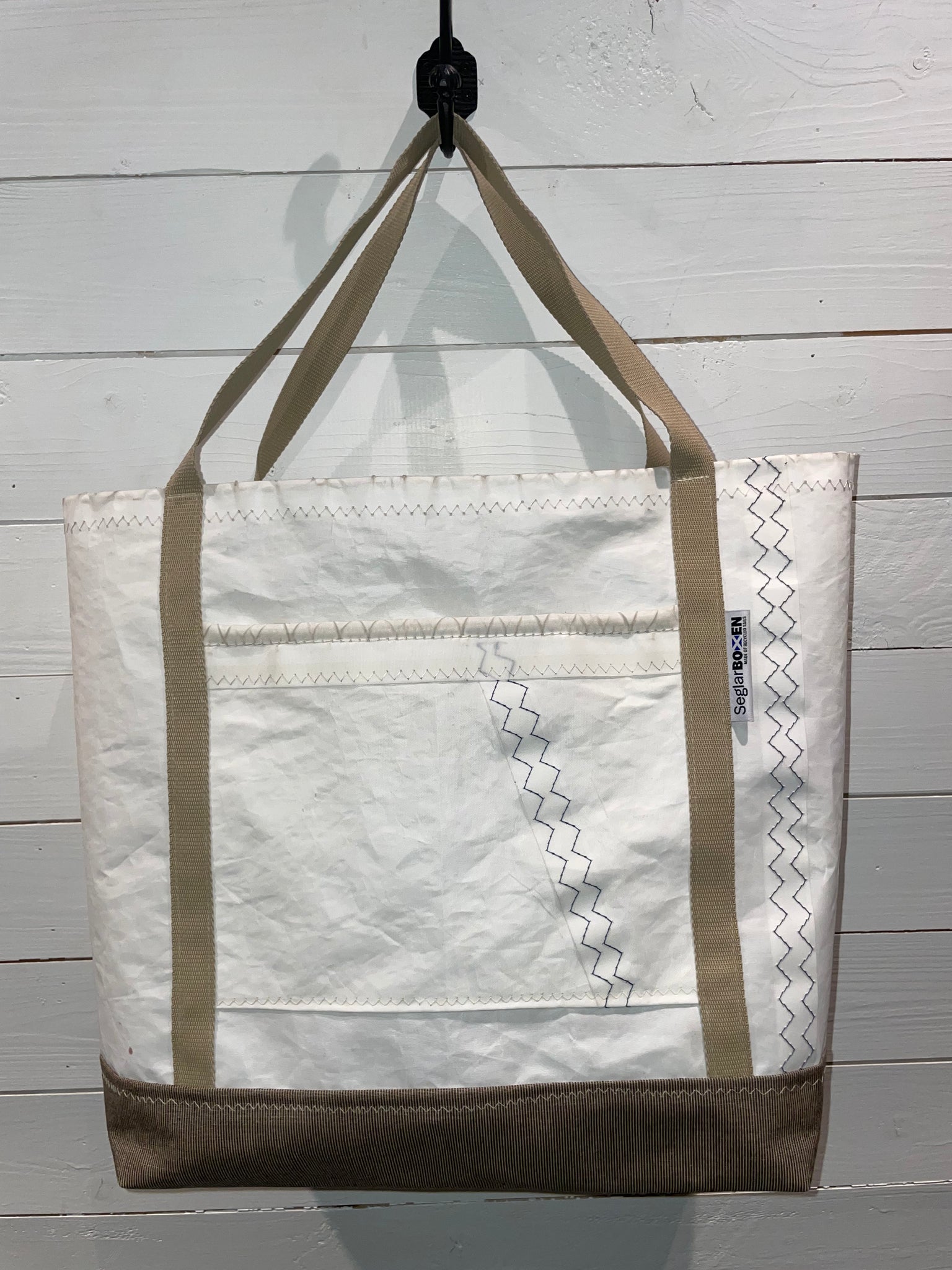 S från SWE i ett J70segel. Botten av fin brunbeige kapellvävsstuv.