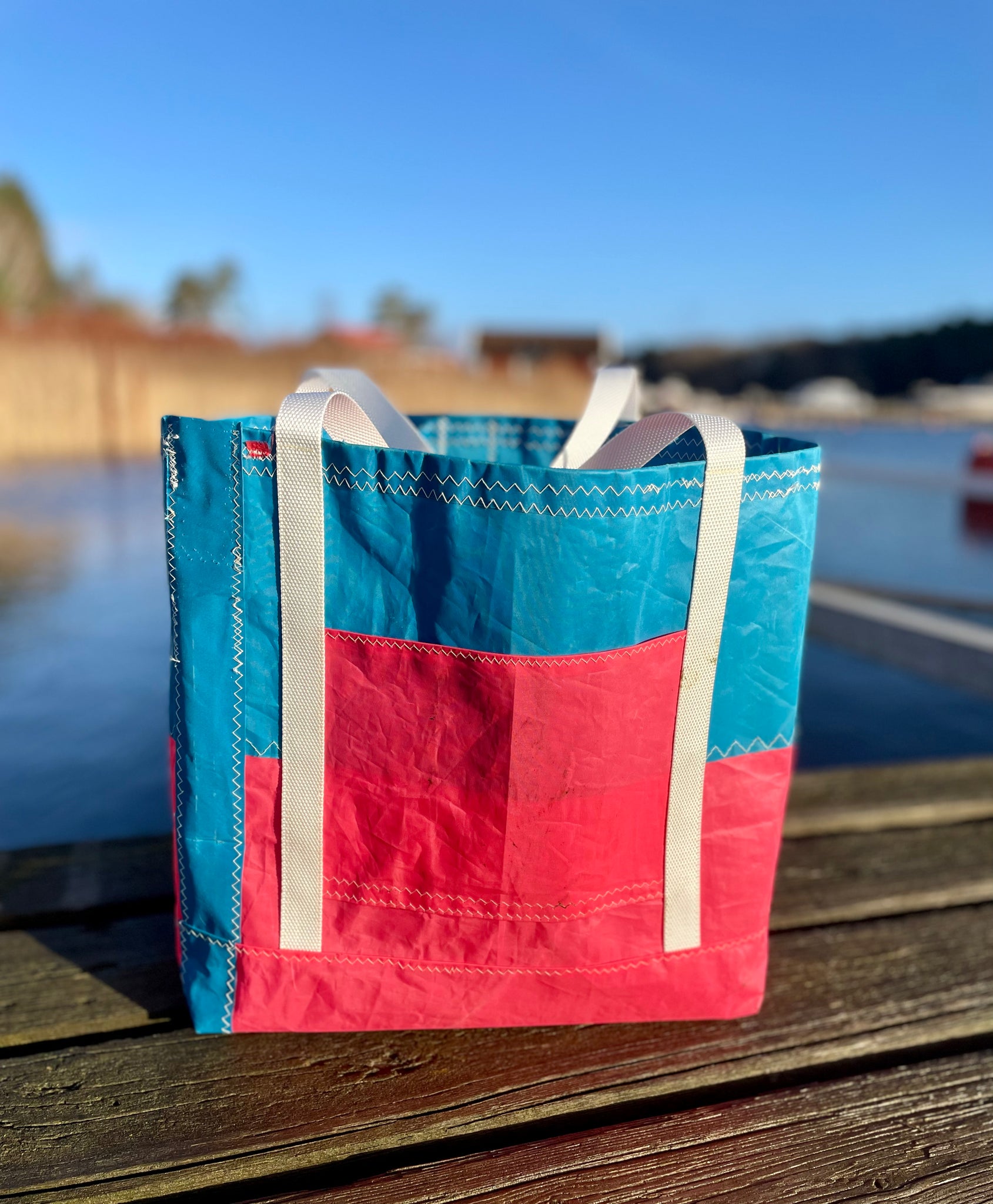 Färgglad Totebag sydd av ett välvårdat och ganska kraftigt surfsegel. Matchar fint med lunchlådeväskan ”Windsurfer” för dig som vill ha hela kitet 😊🌊